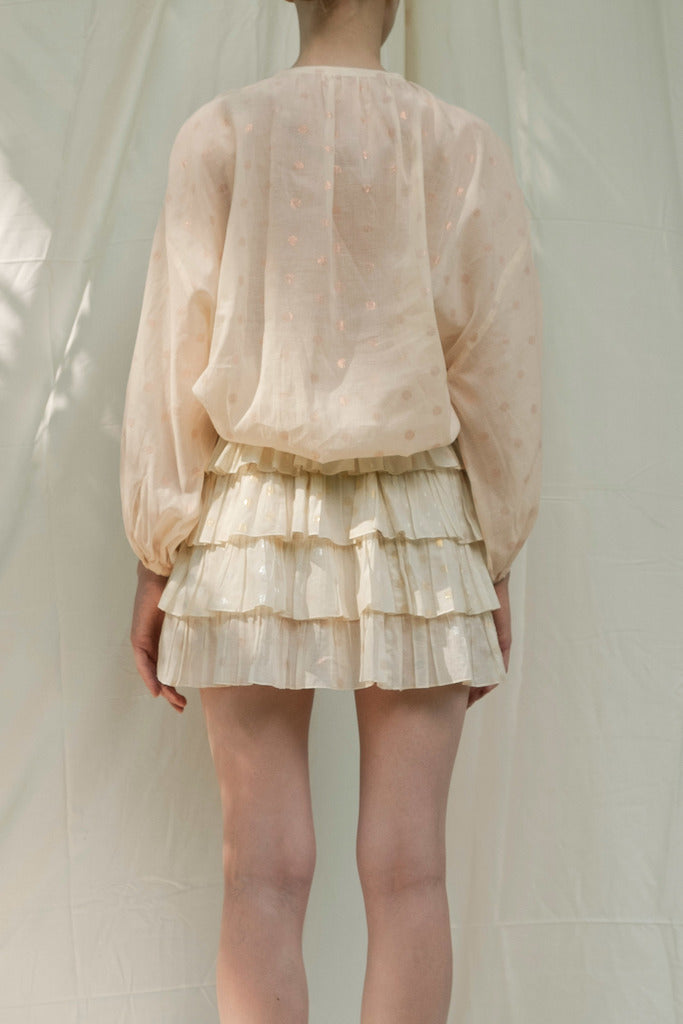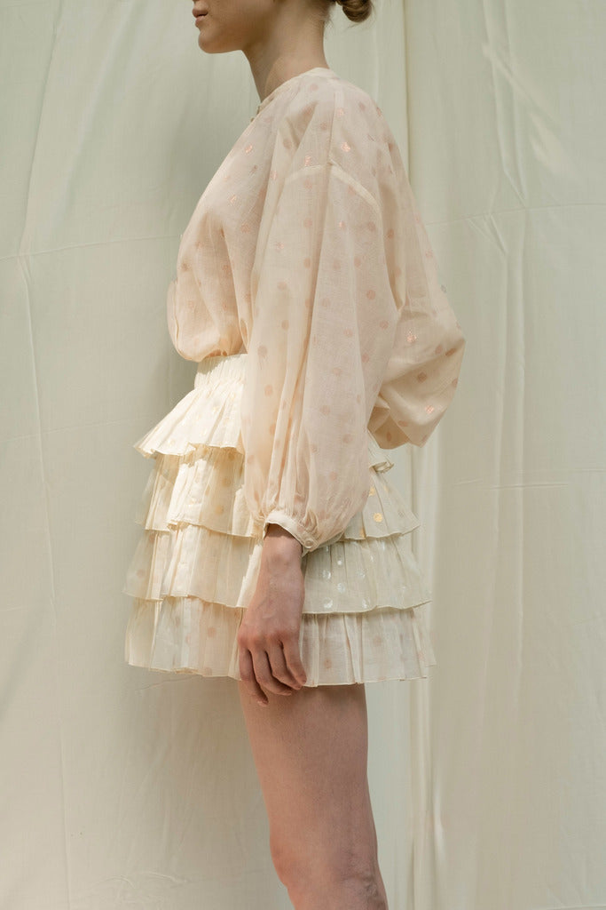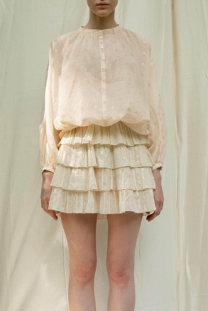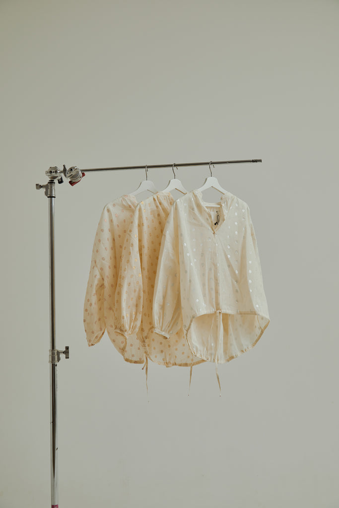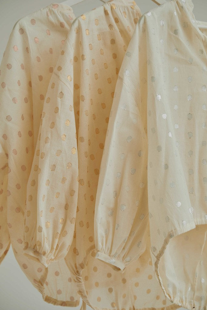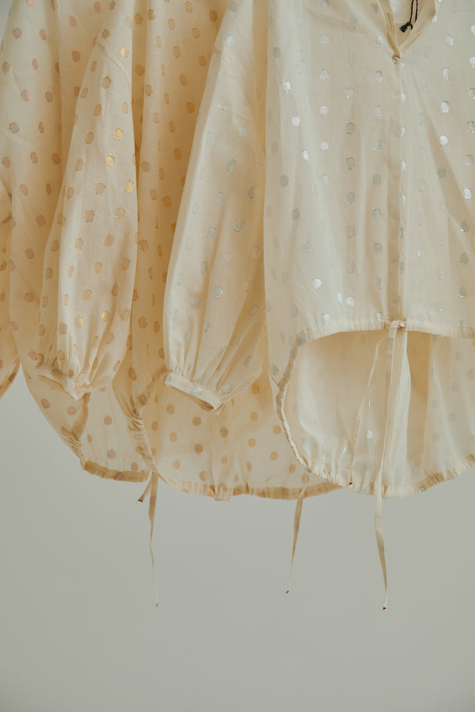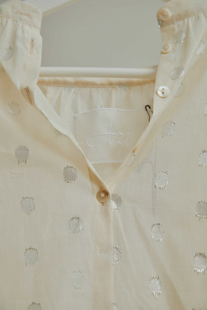 Made of responsibly sourced Indian handloom cotton, mercerized fabric with shell buttons.