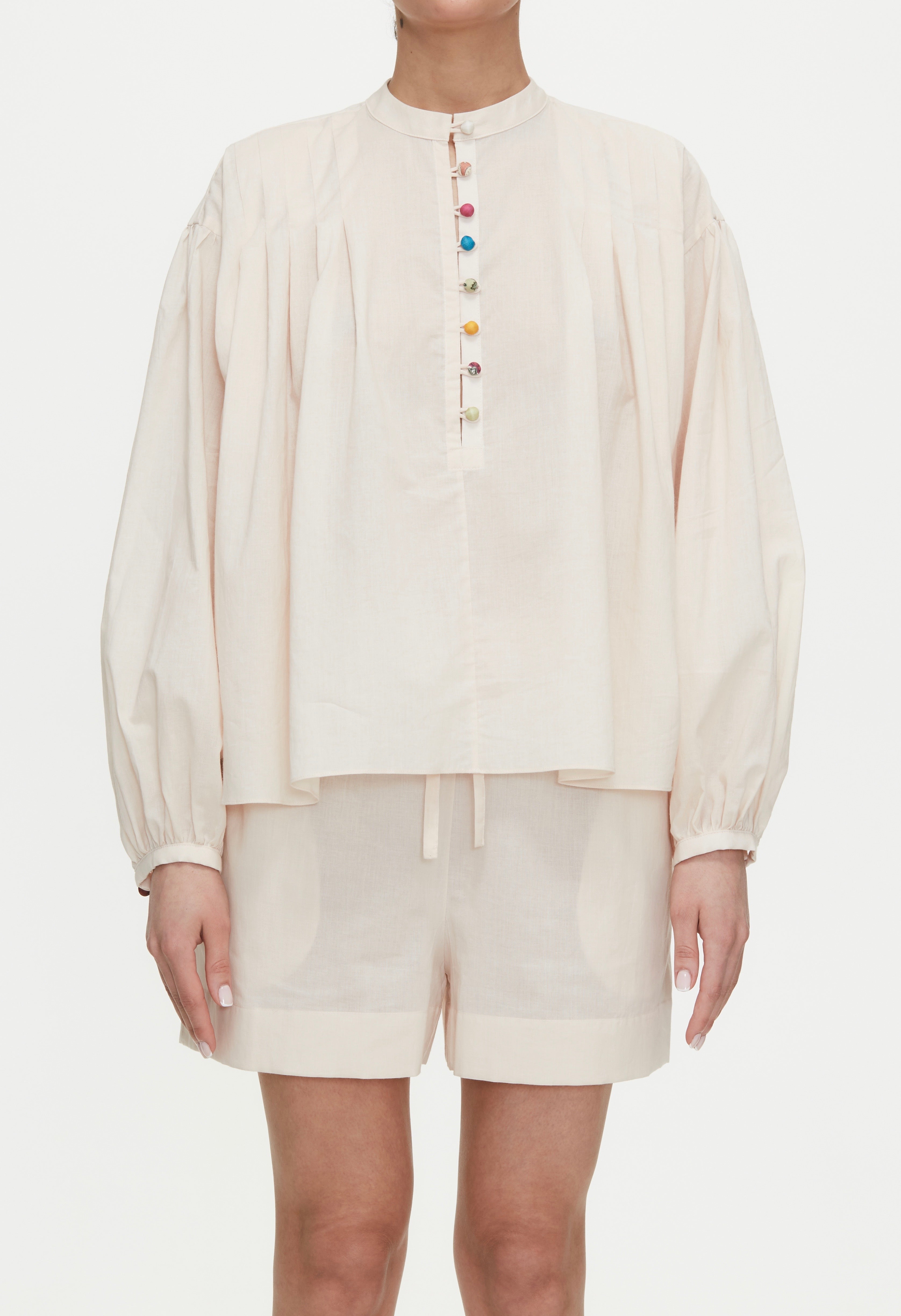 Made from 100% lightweight Indian cotton decorated with vintage silk sari buttons.